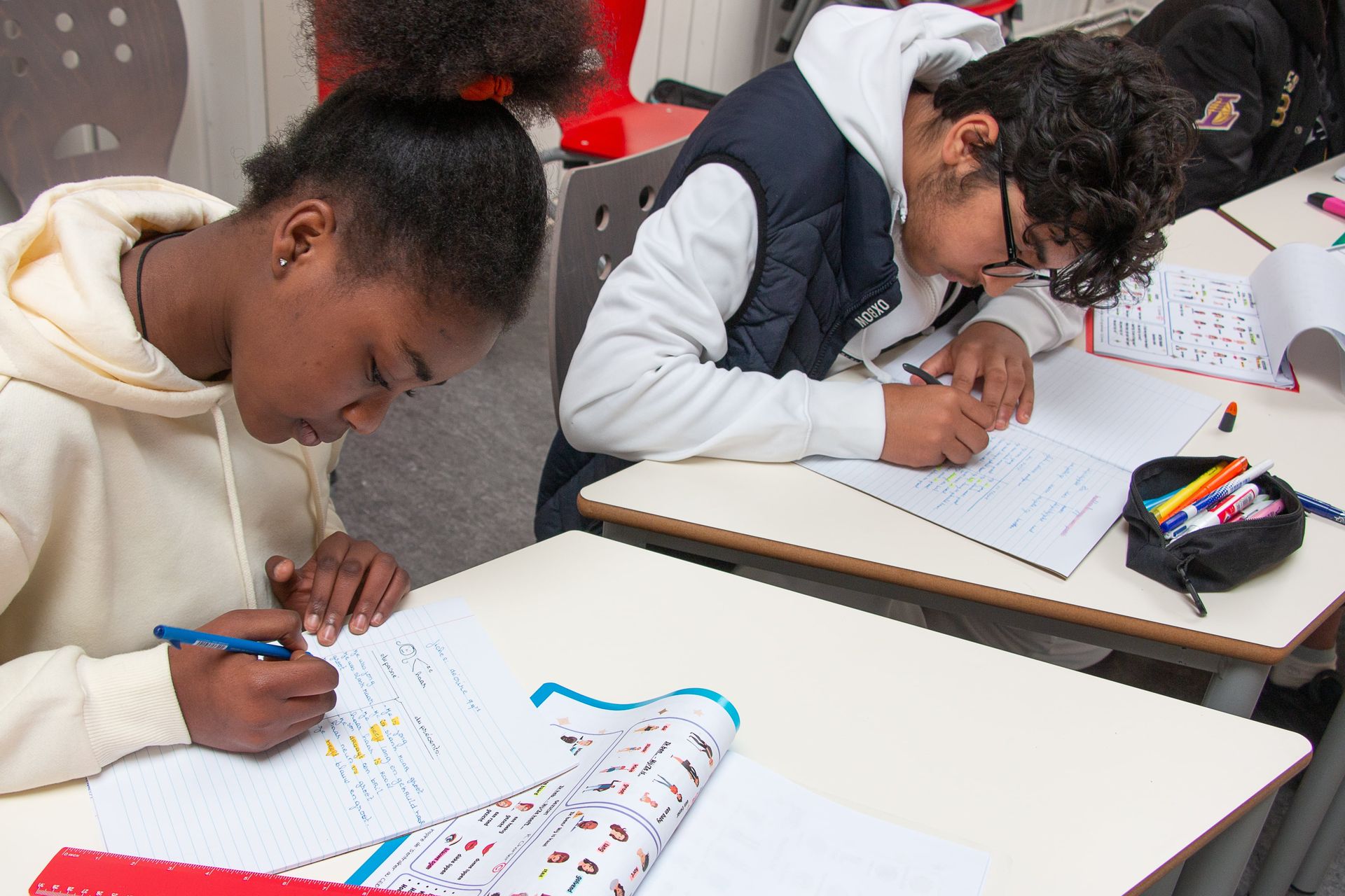 Notre approche vise à rendre l’apprentissage plus accessible et simple et aussi renforcer la confiance des jeunes pour qu'ils(elles) puissent s'exprimer en néerlandais sans inhibition ni crainte.